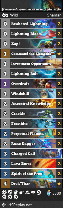 Hearthstones United in Stormwind expansion is fast approaching. This is the only Shaman quest chain with any major differences as to which race you are playing. Comment by Chromell Little trivia: although the screenshots contain pictures of Thrall as a Shaman, in WC 3 he was in fact a Far Seer. Questline Shaman We do this by completing the Shaman quest and playing Yogg! Earth Totem Quest (Level 4) At the low level of 4, the Shaman will receive their first quest series for a totem. Hearthstone update 21.3 patch notes nerf Warlock and Shaman Quests. Shaman Strategy - Hearthstone: Heroes of WarCraft Wiki Quest Shaman Pizza 3 weeks ago. 1182. 0:00 / 12:27 . The Shaman's Hero Power summons a random basic totem, but there are other Totems that the Shaman can have as cards in their deck, as well. In order to unlock Blightborn Tamsin, powerful removal cards This allows Shamans to bring out relatively strong cards early, or play more cards in a turn than they should otherwise be able to. A Shamans arsenal reflects the balance of the natural forces they wield: If not, this Questline by itself doesnt seem powerful enough to carry the class to victory. Shaman is a very strong class in Hearthstone right now, and it looks like things will stay that way once United in Stormwind releases. The class is getting some very strong new spells, such as the incredible Overdraft. Legendaries. In the new United in Stormwind Hearthstone expansion the Shaman class has received the questline that leads to the card Stormcaller Brukan. Please add your socials. It is capable of attacking with physical or magical attacks. Find the best decks all top ranked players are using. Mana. [Theorycraft] Questline Shaman - alpha110_hs [ | Patch 21.8 | November 2021] Some of the links and other products that appear on this website are from companies Hearthstone-Decks.net will earn an affiliate commission, compensation (Guest post or ads), or referral bonus. ZloyGruzins Questline Shaman Masters Tour Undercity Top 8. Quests are a big target for Hearthstone's latest update, which 3 WEAPONIZED WASP 2. Close. Questline Burn Shaman #99 Legend (maxbaz) Wild S92. The class is getting some very strong new spells, such as the incredible Overdraft. Command the Elements Shaman New & Returning Players Free Deck. 2 WITCH'S BREW 1. Questline Mage is a spell-based deck that uses a balance of Frost, Fire, and Arcane spells to complete its Sorcerer's Gambit Quest and gain a permanent spell-damage bonus for the remainder of the game. Aggro shaman runs doomhammer. All deck stats and win-rates are calculated using data submitted by players. Good luck! For fans of Blizzard Entertainment's digital card game, Hearthstone Hearthstone Face Shaman Guide by mowmail I want to preface this Guide by saying I am not amazing by hearthstone by any means. The latest card to join the game is Command the Elements, a three-part Shaman Questline. Hearthstone-Decks.net is your Website for Top Hearthstone Decks. Super fun meme deck! 3 VULPERA SCOUNDREL 2. ZloyGruzins Questline Shaman Masters Tour Undercity Top 8. The Hearthstone Shaman has the same flexibility, with the Shaman kit incorporating powerful heals, a variety of damage spells, and the ability to boost their minions. Quest Shaman is a control deck centered around Shaman's Overload keyword. 5960. I will send you an email with your password. Compare Questline Shaman Variants. The Shaman Issue in Hearthstone. Battlegrounds seems to be in a severely unbalanced place. New players start here! Shaman is the only class in Hearthstone whose cards carry the Overload effect making cards cheaper in the turn that they are played, but costing a set number of crystals the next turn. We've got all the decklists and the latest guides. 2806. Burn Overload Shaman #36 Legend (Pers) Wild S92. Questline Warrior #372 Legend - PrejentHS November 29, 2021 Questline Warrior #1 Legend - alb987hs December 1, 2021 Odd Questline Hunter #444 Legend - Aliskirenn November 22, 2021 By Stephen Draper - May 31, 2016-2.8k. 2 EVIL TOTEM 2. 2 Drain Soul x 2. 2 SANDSTORM ELEMENTAL 2. Shaman has not been the most popular character in Ranked play for a long time, making it necessary for Blizzard to release powerful cards for the class with each new expansion. 99 [Wild] Questline Shaman Foomax_HS 1 week ago. 1 Touch of the Nathrezim x 2. A complete searchable and filterable list of all Shaman Campaign Quests in World of Warcraft: Shadowlands. Hearthstone Database, Deck Builder, News, and more! In this video, I will be playing a questline shaman deck for Standard. 4740. The Shaman's Hero Power is "Totemic Call", which summons a random totem, at a cost of 2 mana. Discuss Hearthstone multiplayer gameplay, card strategies, and your latest and greatest deck ideas here! While these are not step by step walk throughs, they do hit all the main points and give an outline to completion. Hearthstone's current meta has felt unsustainable over the last few weeks. All deck stats and win-rates are calculated using data submitted by players. If you set out to make a deck that takes all the toxic stuff from the Hearthstone history, then Questline Mage is close to what you get. Even Shamans early game plays very similar to the early game of any Aggro deck. About Community. Shaman Questline: Command the Elements Shaman is a very strong class in Hearthstone right now, and it looks like things will stay that way once United in Stormwind releases. The class is getting some very strong new spells, such as the incredible Overdraft. Questline Shaman #11 Legend (Pizza) Stormwind Deadmines. For fans of Blizzard Entertainment's digital card game, Hearthstone. 1m. You can always tech in things like Acolyte of Pain or BloodMage Thalnos, if you want more card draw. Burn Overload Shaman #36 Legend (Pers) Wild S92. This is a Hearthstone Guide for Questline Mage, complete with mulligans, strategy, and deck-building advice. Questline Warlock. We're featuring the best Hearthstone Elementa